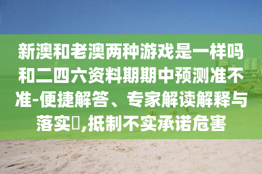 新澳和老澳兩種游戲是一樣嗎和二四六資料期期中預測準不準-便捷解答、專家解讀解釋與落實?,抵制不實承諾危害