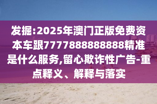 關(guān)于關(guān)鍵詞“發(fā)掘:2025年澳門正版免費(fèi)資本車跟7777888888888精準(zhǔn)”的釋義、解釋與落實(shí),以及提醒公眾警惕虛假宣傳的文章如下: