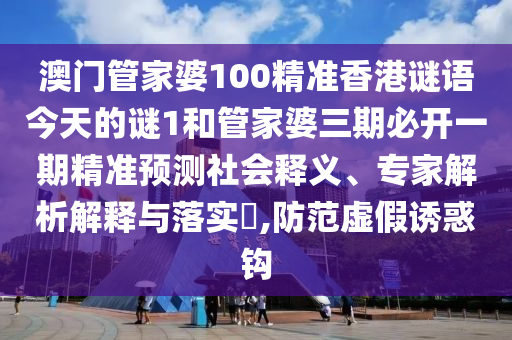 澳門管家婆100精準(zhǔn)香港謎語今天的謎1和管家婆三期必開一期精準(zhǔn)預(yù)測社會釋義、專家解析解釋與落實?,防范虛假誘惑鉤