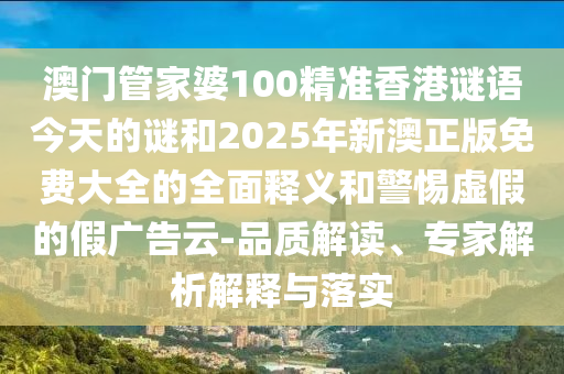 澳門管家婆100精準(zhǔn)香港謎語今天的謎和2025年新澳正版免費(fèi)大全的全面釋義和警惕虛假的假廣告云-品質(zhì)解讀、專家解析解釋與落實(shí)