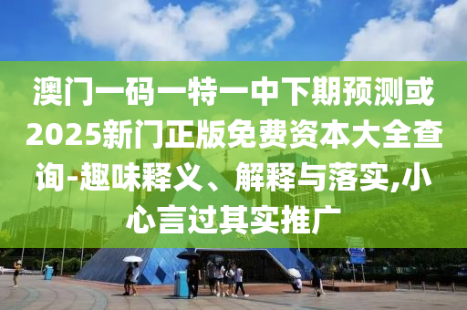 澳門一碼一特一中下期預(yù)測或2025新門正版免費資本大全查詢-趣味釋義、解釋與落實,小心言過其實推廣