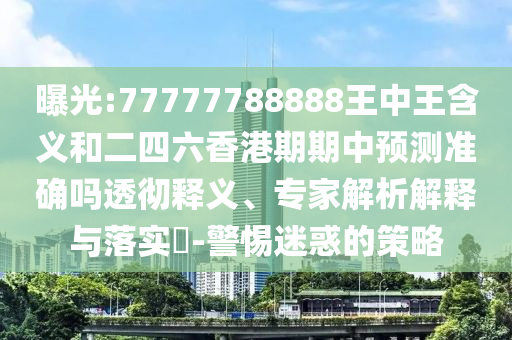 關(guān)于關(guān)鍵詞“曝光:77777788888王中王含義和二四六香港期期中預(yù)測準(zhǔn)確嗎與警惕迷惑的策略”的透徹釋義、專家解析解釋與落實