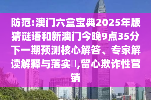 關于防范澳門六盒寶典2025年版猜謎語和新澳門今晚9點35分下一期預測等欺詐性營銷的核心解答、專家解讀解釋與落實