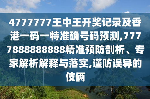 4777777王中王開獎記錄及香港一碼一特準(zhǔn)確號碼預(yù)測,7777888888888精準(zhǔn)預(yù)防剖析、專家解析解釋與落實,謹(jǐn)防誤導(dǎo)的伎倆