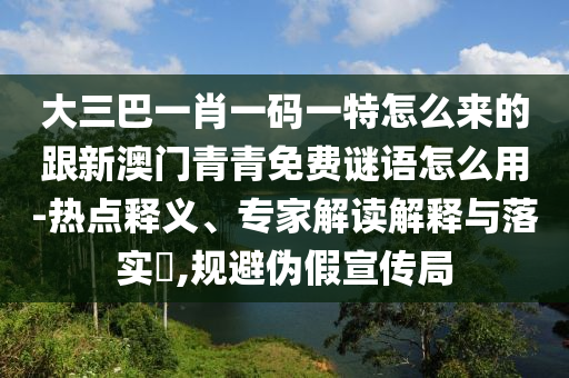 關(guān)于關(guān)鍵詞“大三巴一肖一碼一特怎么來的”與“新澳門青青免費(fèi)謎語怎么用”,以及規(guī)避虛假宣傳的熱點(diǎn)釋義、專家解讀解釋與落實(shí)的文章如下: