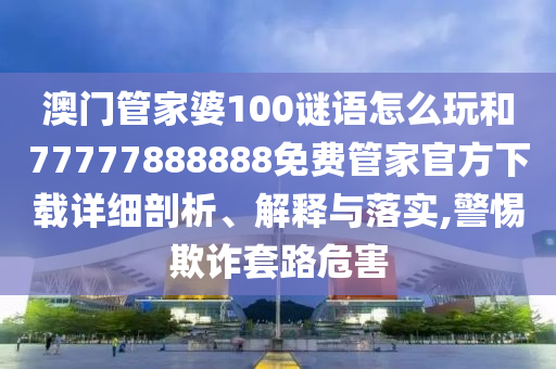 澳門管家婆100謎語怎么玩和77777888888免費(fèi)管家官方下載詳細(xì)剖析、解釋與落實(shí),警惕欺詐套路危害
