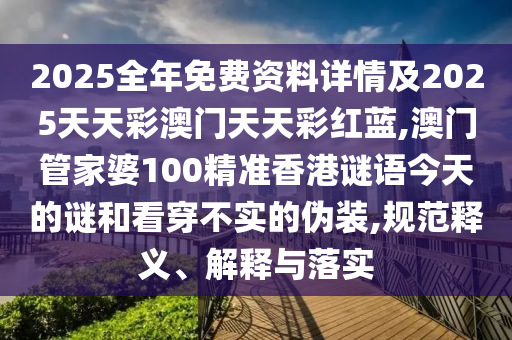 2025全年免費(fèi)資料詳情及2025天天彩澳門天天彩紅藍(lán),澳門管家婆100精準(zhǔn)香港謎語今天的謎和看穿不實(shí)的偽裝,規(guī)范釋義、解釋與落實(shí)
