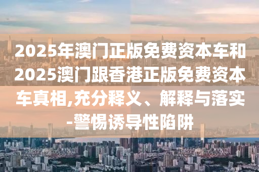 2025年澳門正版免費(fèi)資本車和2025澳門跟香港正版免費(fèi)資本車真相,充分釋義、解釋與落實(shí)-警惕誘導(dǎo)性陷阱