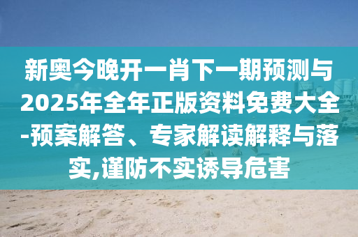 新奧今晚開一肖下一期預(yù)測(cè)與2025年全年正版資料免費(fèi)大全-預(yù)案解答、專家解讀解釋與落實(shí),謹(jǐn)防不實(shí)誘導(dǎo)危害