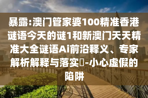關(guān)于關(guān)鍵詞“暴露”、“澳門管家婆”、“香港謎語”、“新澳門天天精準(zhǔn)大全謎語”以及“虛假宣傳”的前沿釋義、專家解析解釋與落實(shí)的詳細(xì)解釋如下: