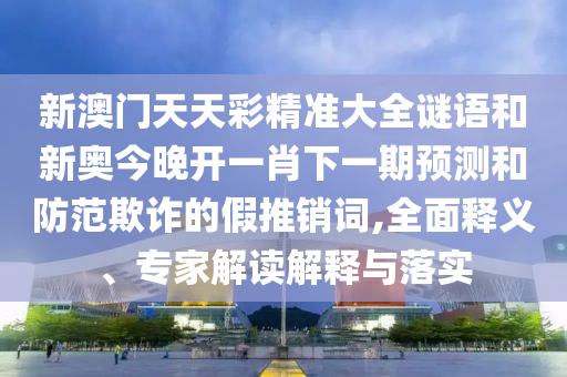 關(guān)于新澳門天天彩精準(zhǔn)大全謎語和新奧今晚開一肖下一期預(yù)測的全面釋義、專家解讀解釋與落實(shí)及防范欺詐的假推銷詞