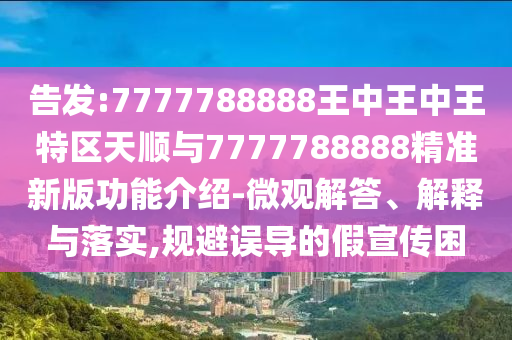 針對(duì)關(guān)鍵詞“告發(fā):7777788888王中王中王特區(qū)天順與7777788888精準(zhǔn)新版功能介紹微觀解答、解釋與落實(shí)”,我們需要確保對(duì)相關(guān)信息進(jìn)行準(zhǔn)確、詳細(xì)的解釋和宣傳,同時(shí)確保用戶能夠清楚明白,在此過(guò)程中,我們必須提醒公眾警惕虛假宣傳,確保用戶能夠獲取真實(shí)、準(zhǔn)確的信息,從而做出明智的決策。