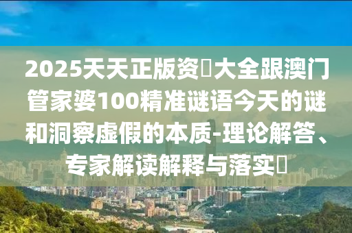 2025天天正版資枓大全跟澳門管家婆100精準(zhǔn)謎語今天的謎和洞察虛假的本質(zhì)-理論解答、專家解讀解釋與落實?