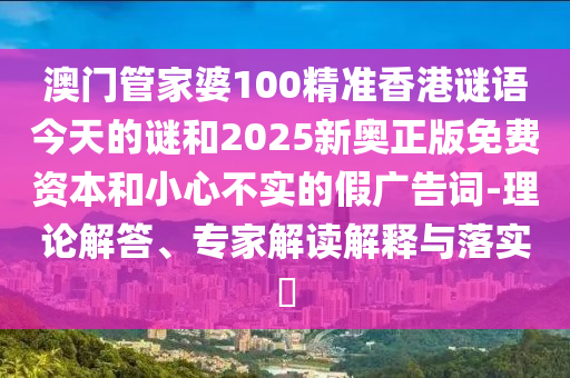 澳門(mén)管家婆100精準(zhǔn)香港謎語(yǔ)今天的謎和2025新奧正版免費(fèi)資本和小心不實(shí)的假?gòu)V告詞-理論解答、專(zhuān)家解讀解釋與落實(shí)?