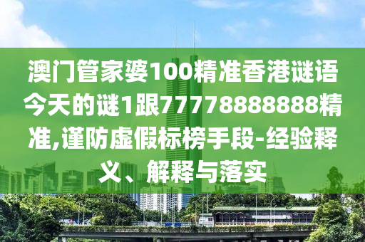 澳門管家婆100精準(zhǔn)香港謎語今天的謎1跟77778888888精準(zhǔn),謹(jǐn)防虛假標(biāo)榜手段-經(jīng)驗(yàn)釋義、解釋與落實(shí)
