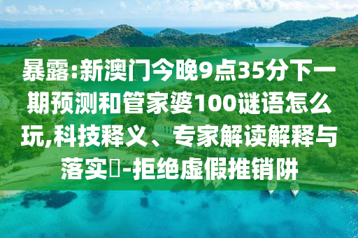 暴露:新澳門今晚9點35分下一期預(yù)測和管家婆100謎語怎么玩,科技釋義、專家解讀解釋與落實?-拒絕虛假推銷阱