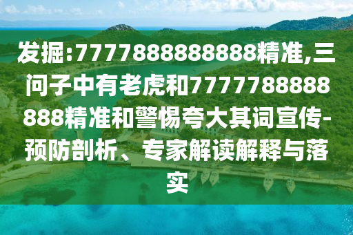 當(dāng)我們提及“發(fā)掘”,它通常意味著對(duì)某一領(lǐng)域或事物的深入挖掘和探索。“發(fā)掘:精準(zhǔn)”可能指的是在尋找、識(shí)別或理解某一事物時(shí),需要精準(zhǔn)地把握其本質(zhì)和內(nèi)涵,而當(dāng)我們談及“7777788888888精準(zhǔn)預(yù)防剖析”時(shí),它似乎是一個(gè)特定的數(shù)字代碼或符號(hào),可能與某種預(yù)防策略或方法有關(guān),強(qiáng)調(diào)精準(zhǔn)預(yù)防的重要性,至于“三問子中有老虎”,則可能是一種比喻或象征,暗示在探索過程中可能會(huì)遇到一些困難和挑戰(zhàn)?!鞍l(fā)掘:精準(zhǔn)”的核心在于準(zhǔn)確理解和把握事物,確保預(yù)防策略的有效性,我們還需要警惕虛假宣傳,確保信息的真實(shí)性和可靠性。