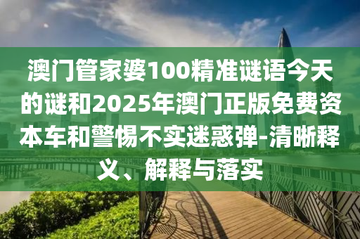 澳門管家婆100精準謎語今天的謎和2025年澳門正版免費資本車:清晰釋義、解釋與落實