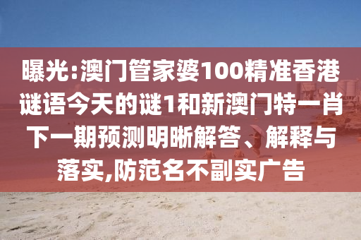 曝光:澳門管家婆100精準(zhǔn)香港謎語今天的謎1和新澳門特一肖下一期預(yù)測明晰解答、解釋與落實(shí),防范名不副實(shí)廣告