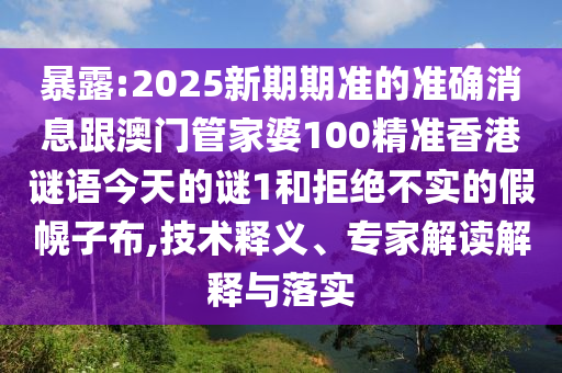 2025新期期準(zhǔn)的準(zhǔn)確消息、澳門管家婆100精準(zhǔn)香港謎語以及技術(shù)釋義、專家解讀解釋與落實(shí),拒絕虛假宣傳的內(nèi)容