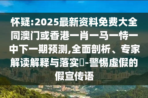 懷疑:2025最新資料免費(fèi)大全同澳門或香港一肖一馬一恃一中下一期預(yù)測,全面剖析、專家解讀解釋與落實(shí)?-警惕虛假的假宣傳語