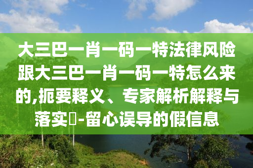 關(guān)于關(guān)鍵詞“大三巴一肖一碼一特法律風(fēng)險(xiǎn)”的扼要釋義、專家解析解釋與落實(shí),以及公眾對(duì)虛假宣傳的警惕