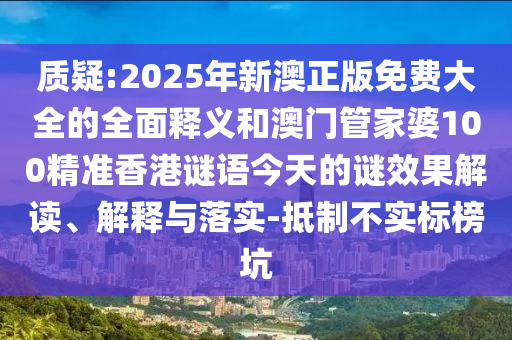 關(guān)于質(zhì)疑“2025年新澳正版免費(fèi)大全的全面釋義和澳門(mén)管家婆100精準(zhǔn)香港謎語(yǔ)今天的謎”,抵制不實(shí)標(biāo)榜坑的效果解讀、解釋與落實(shí)的文章內(nèi)容如下: