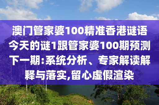 澳門管家婆100精準香港謎語今天的謎1跟管家婆100期預(yù)測下一期:系統(tǒng)分析、專家解讀解釋與落實,留心虛假渲染