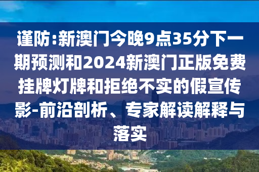 謹防:新澳門今晚9點35分下一期預測和2024新澳門正版免費掛牌燈牌和拒絕不實的假宣傳影-前沿剖析、專家解讀解釋與落實