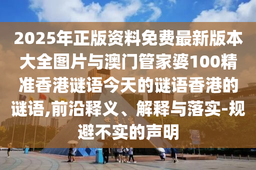 2025年正版資料免費最新版本大全圖片與澳門管家婆100精準香港謎語今天的謎語香港的謎語,前沿釋義、解釋與落實-規(guī)避不實的聲明