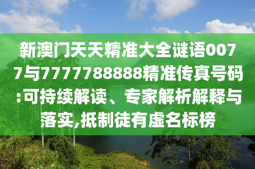新澳門天天精準(zhǔn)大全謎語0077與7777788888精準(zhǔn)傳真號(hào)碼:可持續(xù)解讀、專家解析解釋與落實(shí),抵制徒有虛名標(biāo)榜