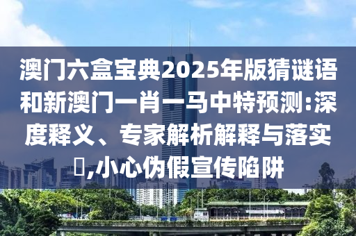 澳門六盒寶典2025年版猜謎語和新澳門一肖一馬中特預測:深度釋義、專家解析解釋與落實?,小心偽假宣傳陷阱
