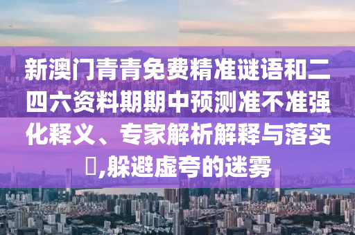 關(guān)于新澳門青青免費精準謎語和二四六資料期期中預(yù)測準不準的躲避虛夸的迷霧,這是一個涉及多個層面的話題,我們將從全面釋義、專家解讀與落實、警惕虛假宣傳等方面進行詳細解析。