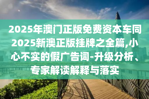 2025年澳門正版免費資本車同2025新澳正版掛牌之全篇,小心不實的假廣告詞-升級分析、專家解讀解釋與落實