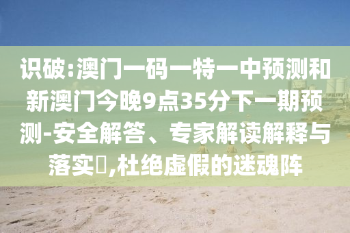澳門一碼一特一中預測和新澳門今晚9點35分下一期預測:安全解答、專家解讀解釋與落實?