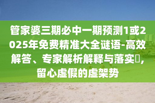 管家婆三期必中一期預測1或2025年免費精準大全謎語-高效解答、專家解析解釋與落實?,留心虛假的虛架勢