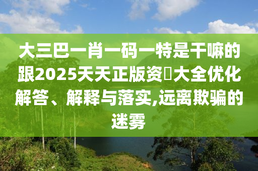 大三巴一肖一碼一特是干嘛的跟2025天天正版資枓大全優(yōu)化解答、解釋與落實,遠(yuǎn)離欺騙的迷霧