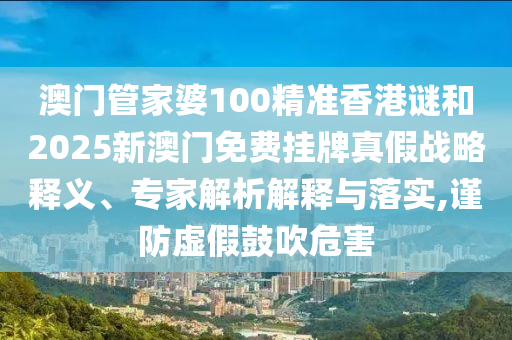 澳門管家婆100精準(zhǔn)香港謎和2025新澳門免費(fèi)掛牌真假戰(zhàn)略釋義、專家解析解釋與落實(shí),謹(jǐn)防虛假鼓吹危害