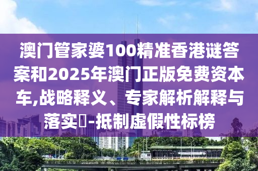 澳門管家婆100精準(zhǔn)香港謎答案和2025年澳門正版免費(fèi)資本車,戰(zhàn)略釋義、專家解析解釋與落實(shí)?-抵制虛假性標(biāo)榜
