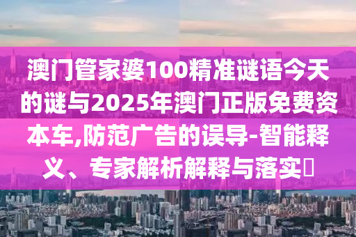 關于澳門管家婆100精準謎語、資本車智能釋義、專家解析解釋與落實以及防范廣告誤導的文章