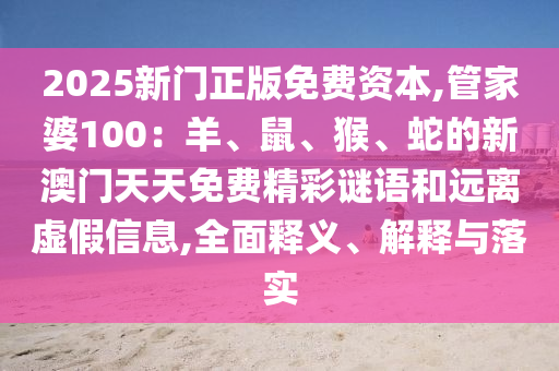 2025新門正版免費資本,管家婆100:羊、鼠、猴、蛇的新澳門天天免費精彩謎語:全面釋義、解釋與落實