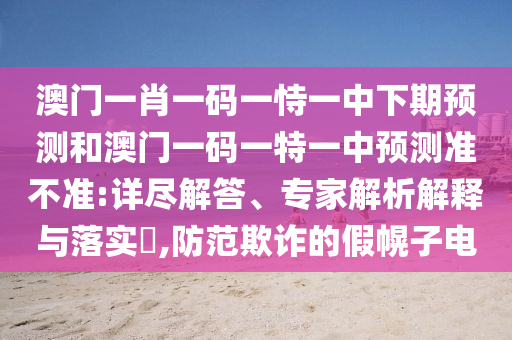 關(guān)于澳門(mén)一肖一碼一恃一中下期預(yù)測(cè)和澳門(mén)一碼一特一中預(yù)測(cè)準(zhǔn)不準(zhǔn)的詳盡解答、專(zhuān)家解析解釋與落實(shí)防范虛假宣傳及欺詐行為的警示文章