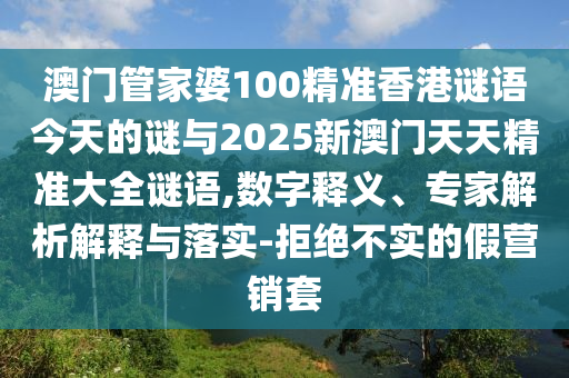 澳門管家婆100精準(zhǔn)香港謎語今天的謎與2025新澳門天天精準(zhǔn)大全謎語,數(shù)字釋義、專家解析解釋與落實(shí)-拒絕不實(shí)的假營銷套