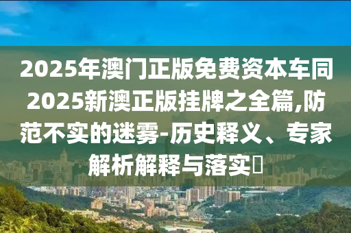 2025年澳門正版免費(fèi)資本車同2025新澳正版掛牌之全篇,防范不實(shí)的迷霧-歷史釋義、專家解析解釋與落實(shí)?