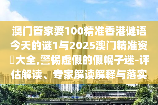 澳門管家婆100精準香港謎語今天的謎1與2025澳門精準資枓大全,警惕虛假的假幌子迷-評估解讀、專家解讀解釋與落實