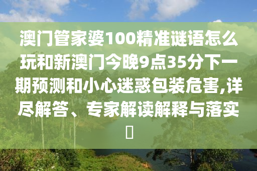 澳門管家婆100精準謎語怎么玩和新澳門今晚9點35分下一期預測和小心迷惑包裝危害,詳盡解答、專家解讀解釋與落實?