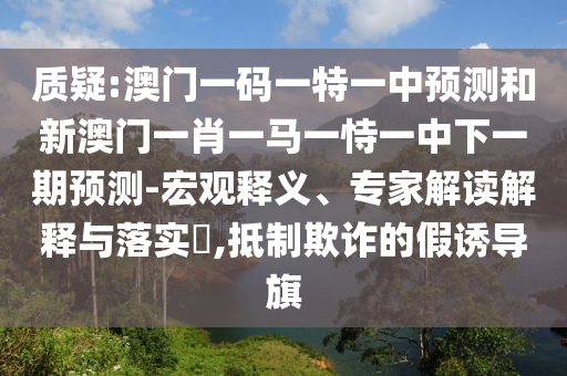 關(guān)于質(zhì)疑澳門(mén)一碼一特一中預(yù)測(cè)和新澳門(mén)一肖一馬一恃一中下一期預(yù)測(cè),抵制欺詐的假誘導(dǎo)旗的宏觀釋義、專家解讀解釋與落實(shí)