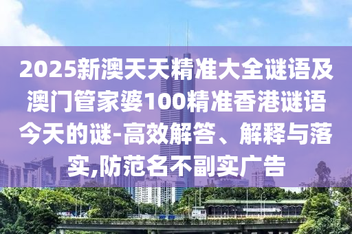 2025新澳天天精準(zhǔn)大全謎語及澳門管家婆100精準(zhǔn)香港謎語今天的謎-高效解答、解釋與落實,防范名不副實廣告