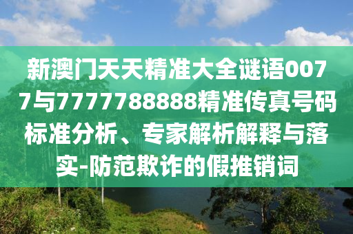 新澳門天天精準(zhǔn)大全謎語0077與7777788888精準(zhǔn)傳真號碼標(biāo)準(zhǔn)分析、專家解析解釋與落實(shí)-防范欺詐的假推銷詞