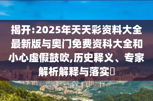 揭開:2025年天天彩資料大全最新版與奧門免費資科大全和小心虛假鼓吹,歷史釋義、專家解析解釋與落實?